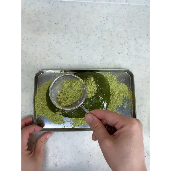 In the case of matcha warabi mochi, matcha powder is combined with kinako powder to create a uniquely nutty and earthy flavor. Once you drizzle kuromitsu (brown sugar) syrup over the top, you've got a perfectly harmonized dessert.