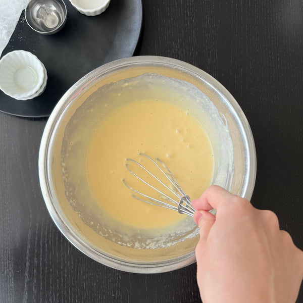 The ingredients are quite simple. While you can use regular flour, I used a hot cake mix. These convenient mixes typically contain flour, sugar, skim milk powder, fat, oil, baking powder, and vanilla flavoring. They simplify preparation by removing the need for sieving or adding extra ingredients. In Japan, hot cake mix is far more than pancake batter. It is a versatile ingredient that exceeds expectations, so trying a Japanese hot cake mix is well worth it.