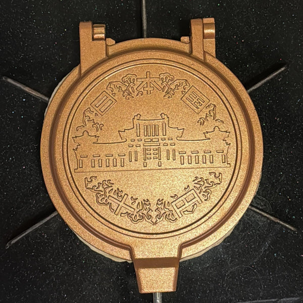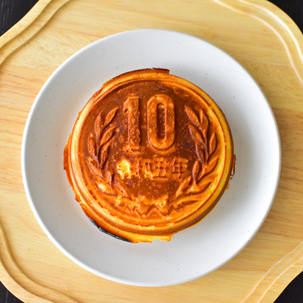 The 10-yen design does not stop at the front. On the back of the cheese coin, you can find a detailed depiction of the Phoenix Hall of Byodo-in Temple in Kyoto. Recreating these intricate designs requires a special mold or cooking pan, as shown in the recipe steps below. Even without one, you can still enjoy the taste and signature cheese-pull experience.