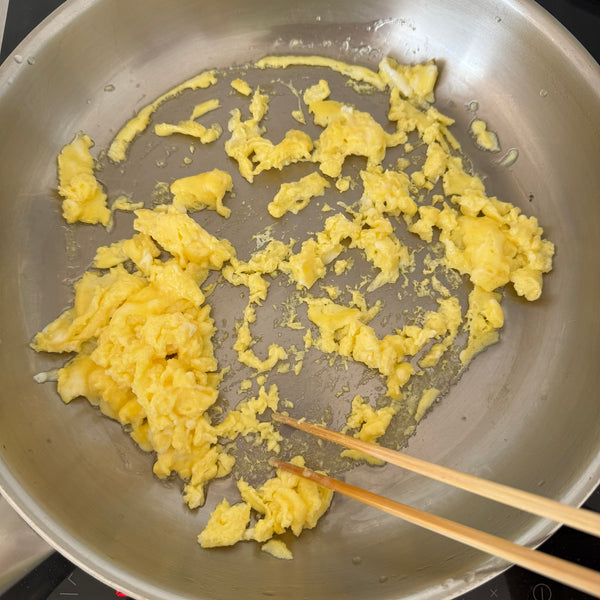 The pork is cooked until crumbly and slightly caramelized in a sweet-savory glaze, while the eggs are gently scrambled over low heat to keep them soft and moist. Served over freshly steamed Japanese short-grain rice, it’s a visually pleasing and flavorful meal. Add green peas or scallions for color and a hint of freshness.