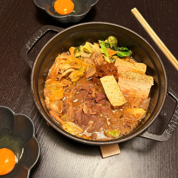 Just like sukiyaki, sakura nabe is traditionally enjoyed by dipping the cooked meat and vegetables into raw beaten egg, adding an extra layer of richness and texture.