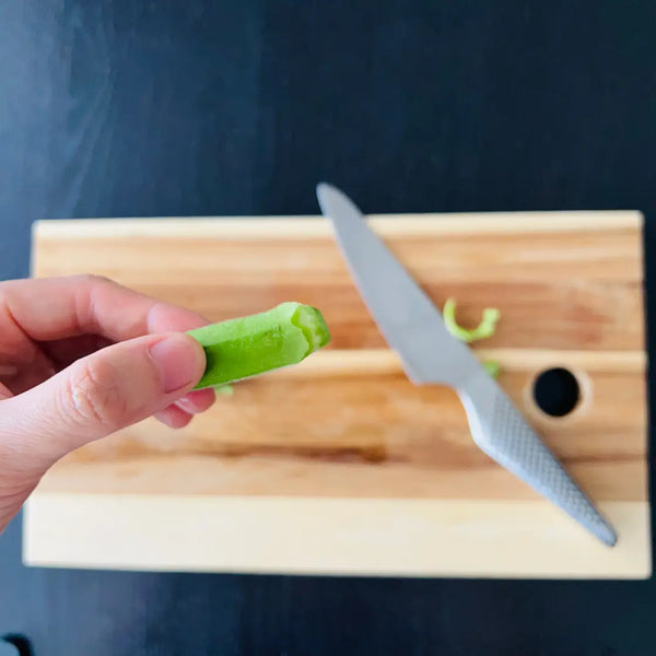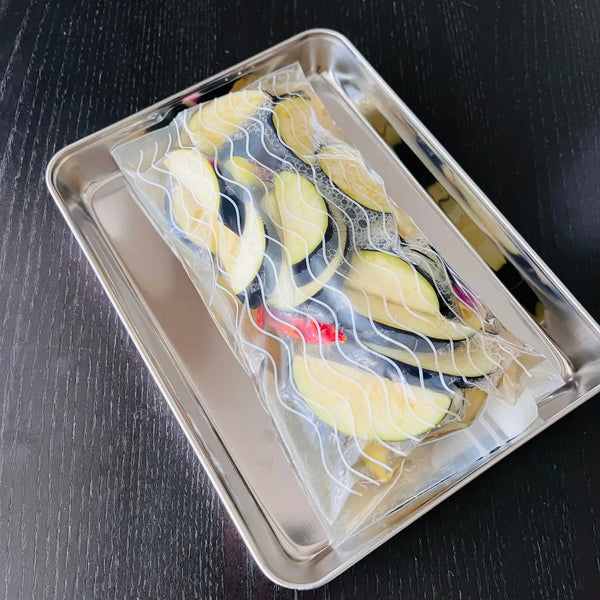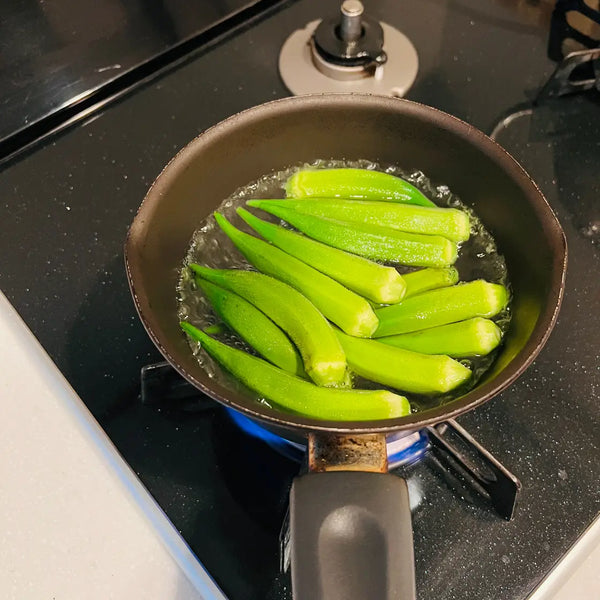 This quick and easy type of Tsukemono is very convenient as you can make it with just a few ingredients. As Asazuke is a simple dish, the taste also depends on the quality and freshness of the vegetables you use. You can use what’s growing in your garden or vegetables in season at your local farmer’s markets. This time, we chose typical Japanese summer vegetables: cucumber, eggplant, okra, edamame, and cherry tomatoes.